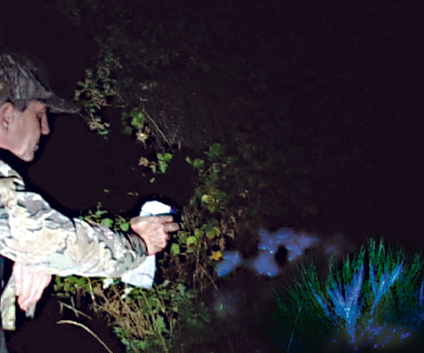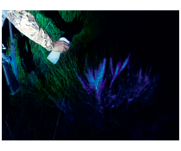 Selv når blod er ikke synlig i de første par meter, vil små dråber blod projiceret på tidspunktet for virkningen blive afsløret af BlueStar®. Denne uvurderlige oplysninger informerer dig om, om du har ramt dyret og giver dig mulighed for at finde det. BlueStar® er lugtfri og ødelægger ikke blodets særlige egenskaber, der giver mulighed for en efterfølgende søgning ved en blodhund.