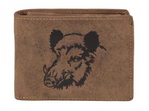 Smuk tegnebog med vildsvin lædermotiv. Håndsyet og meget holdbar.