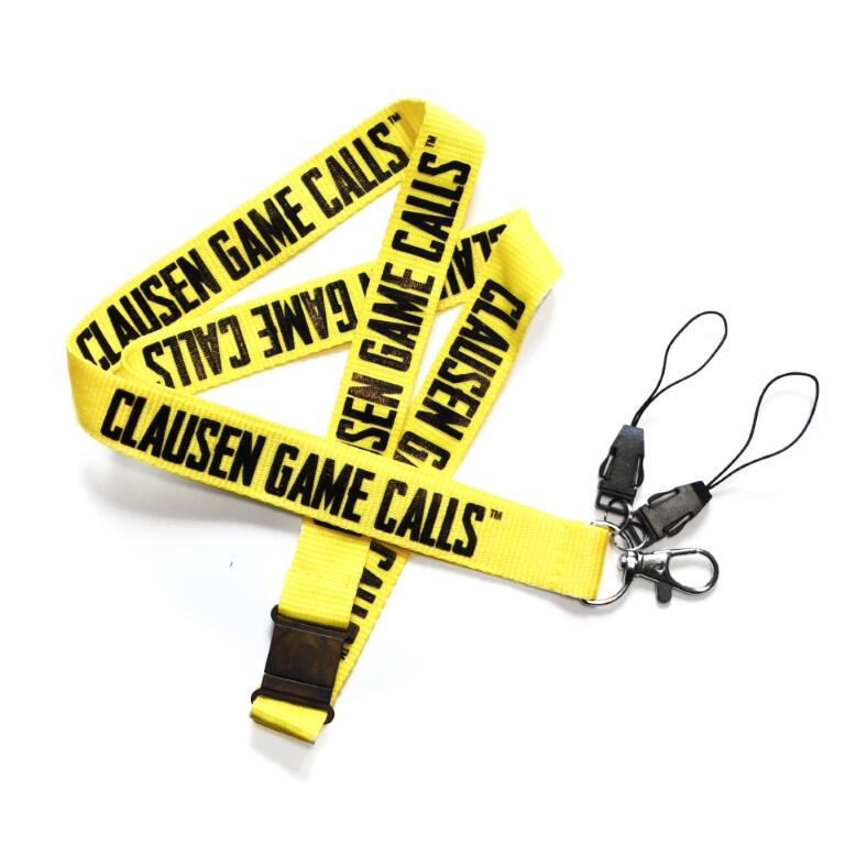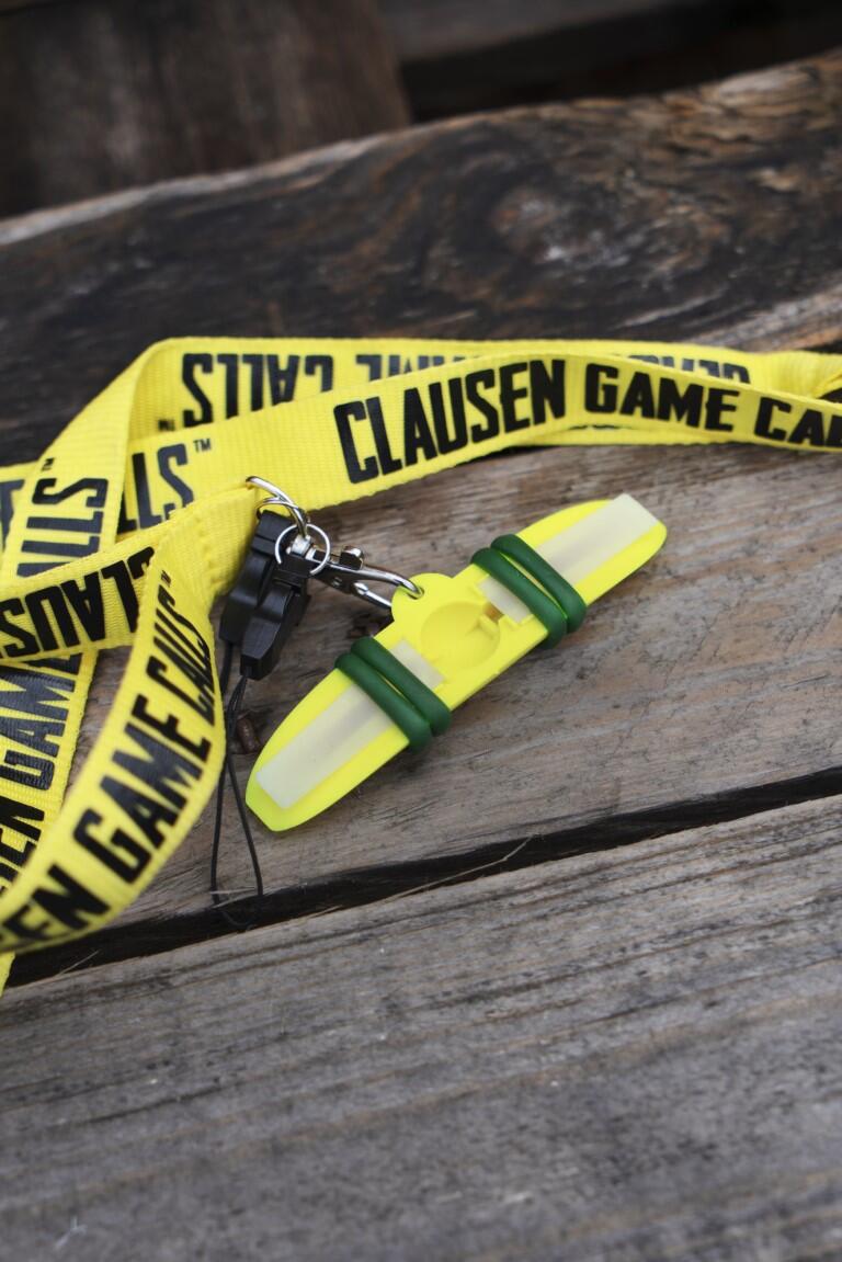 Snoren er gul med Clausen Lokkekald logo rundt om og er desuden udstyret med en quick releasebeskyttelse i nakken.