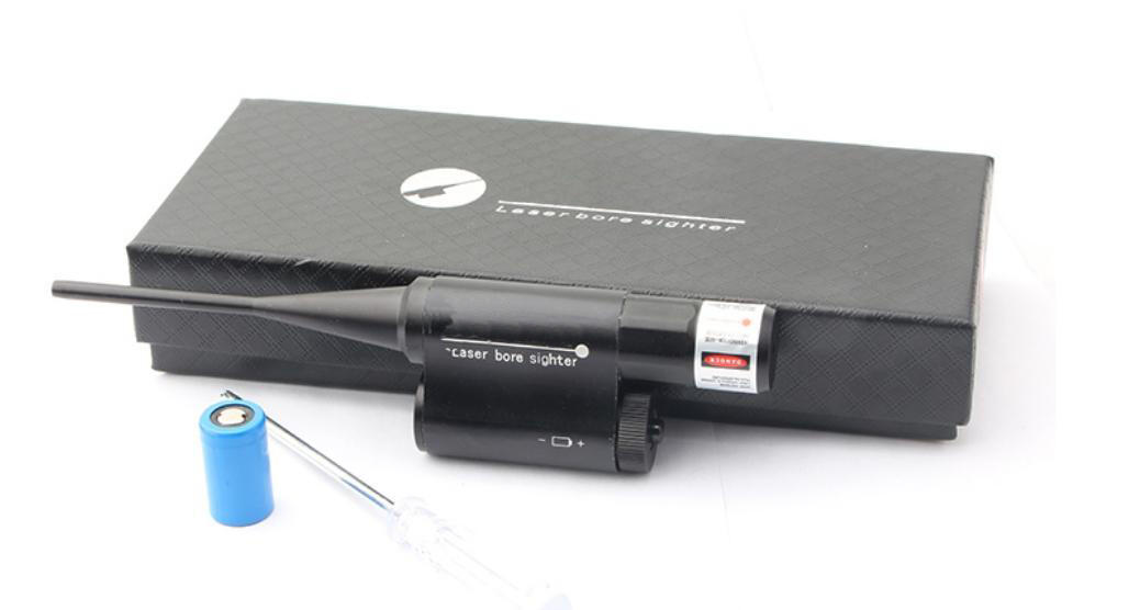 Når laseren er aktiveret, placeres ”boresight” lseren forsigtigt i geværets pibe.