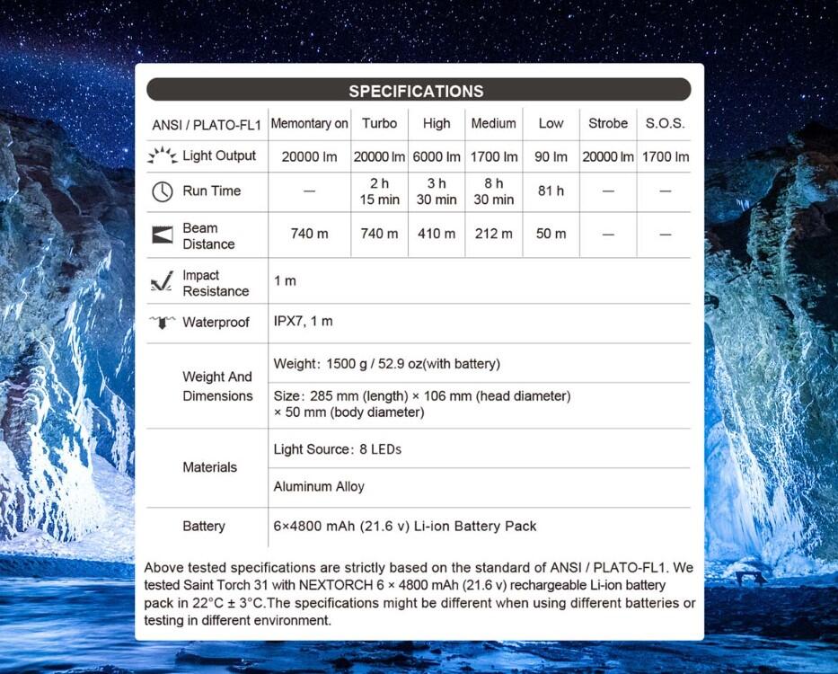 NEXTORCH Saint Torch 31. 20000 lumens