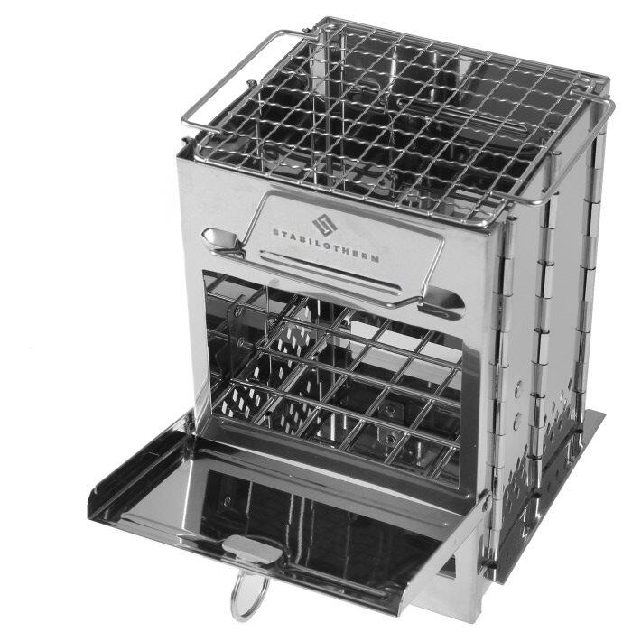 Dette lille komfur er et praktisk og sikkert alternativ til åbent bål. Grillen varmer meget effektivt og beskytter varmen mod vinden. Er meget solidt opbygget og kan også bære de tunge støbejerngryder. Transportpose medfølger.