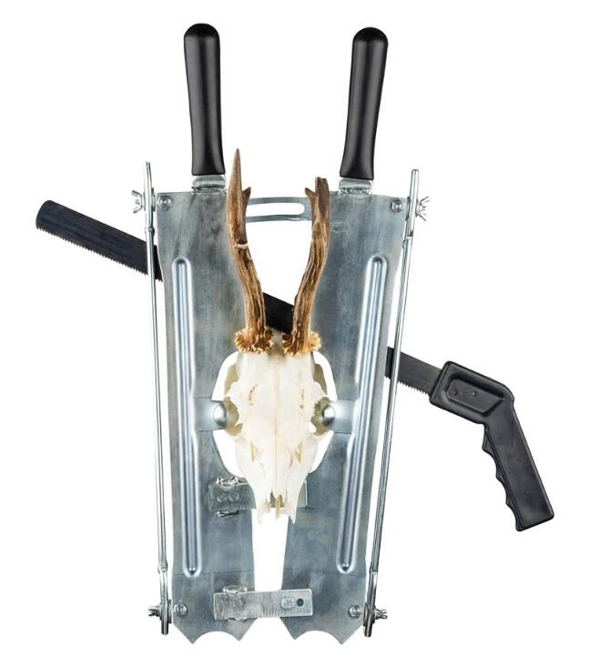 Bestående af galvaniseret stålsav og udstyret med en variabel føringsskinne, vægten er kun ca. 1,8 kg og er ikke kun til afskæring af geviret fra f.eks. råbukke, men muliggør også et rent og frem for alt glat snit.