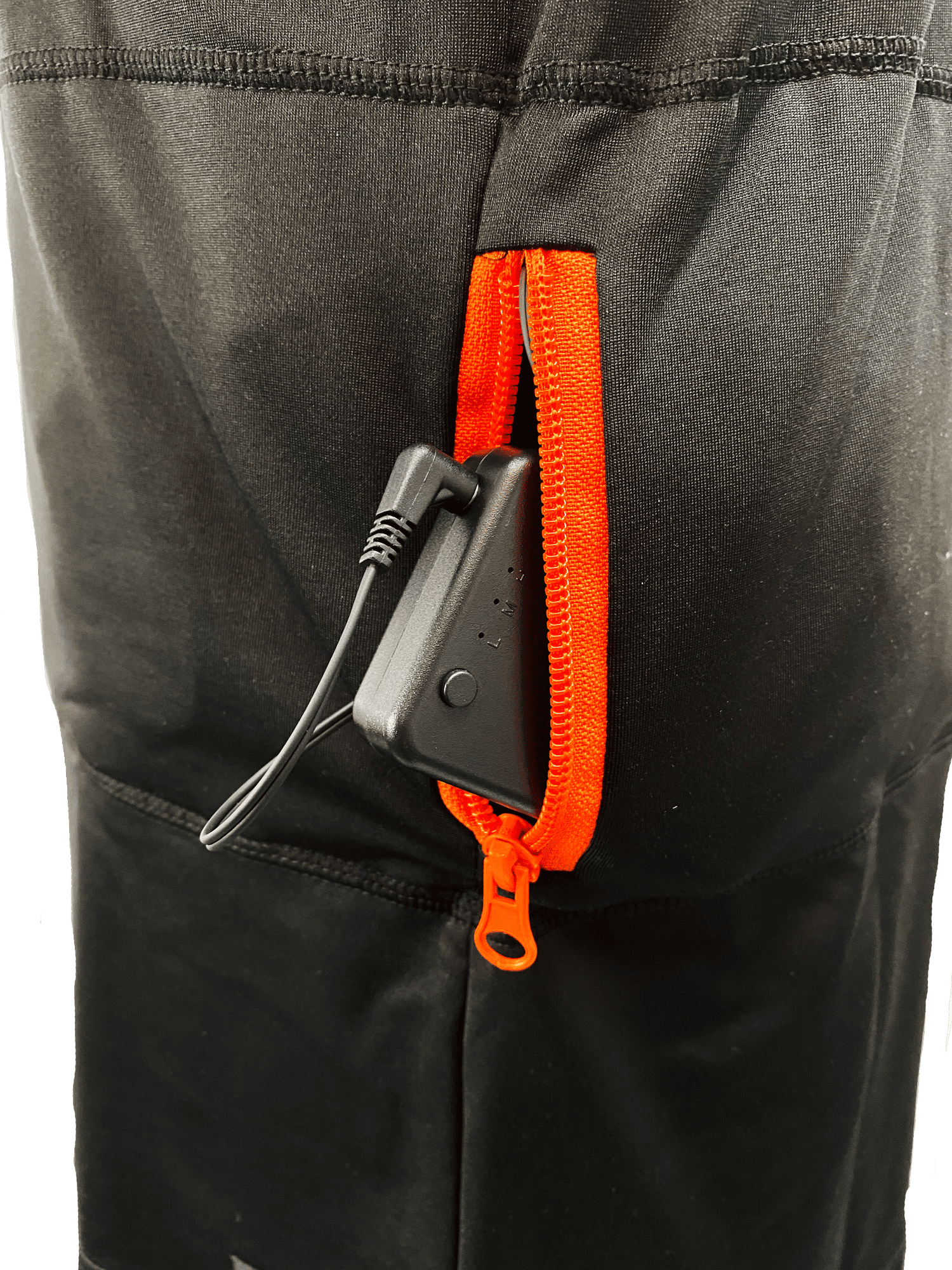 læg det tilsluttede batteri i lommen og luk lynlås. Bemærk, Jagt-Jakt undertøjet er fremstillet med ekstra lang tilslutningsledning så du kan have batteriet tilsluttet i lommen på dine ydre bukser. Dermed kan du let skifte batteri om nødvendigt (ekstra batterier kan tilkøbes).