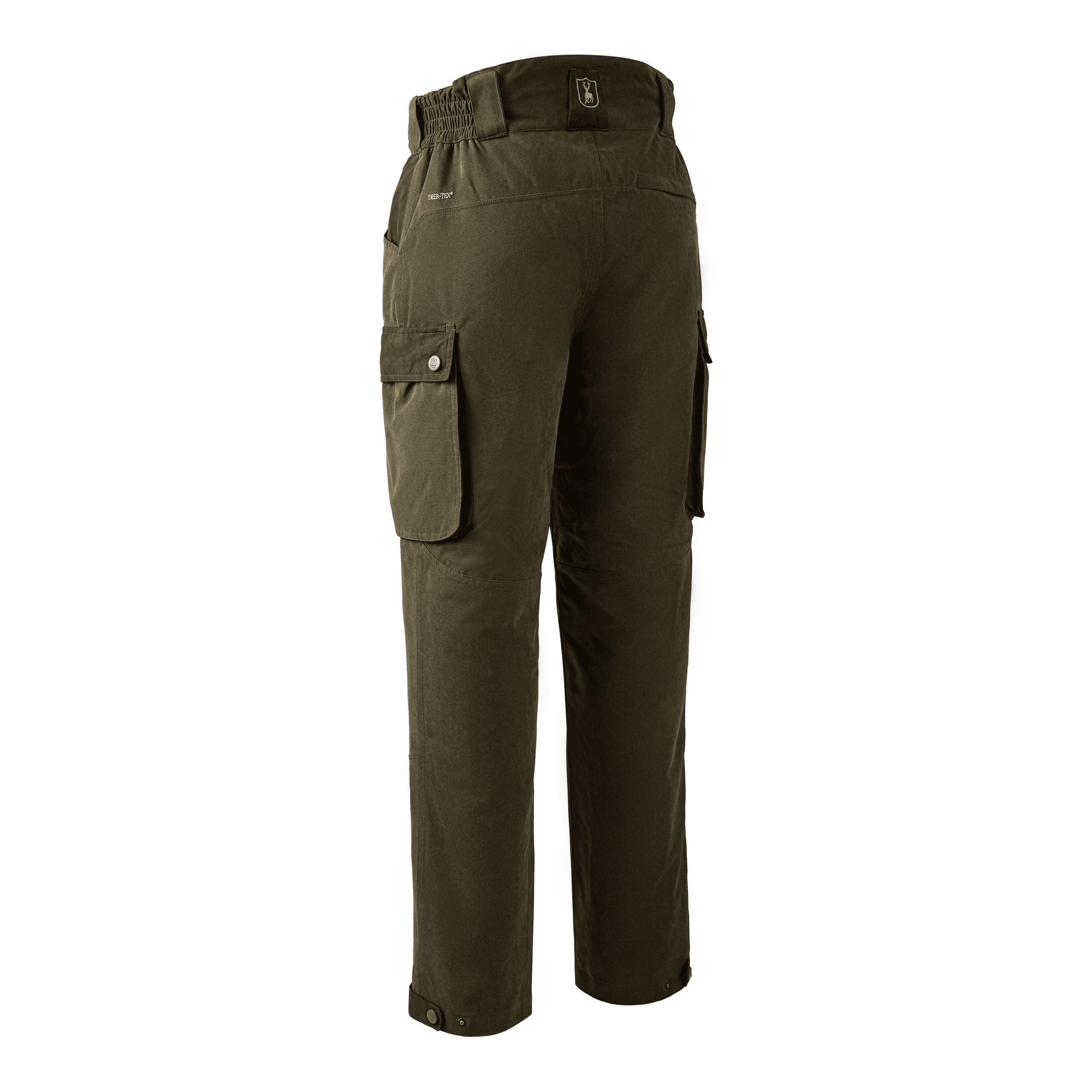 Moderne jagtbukser med Deer-Tex® membran, imiteret ruskind detaljer og funktionelle lommer.
