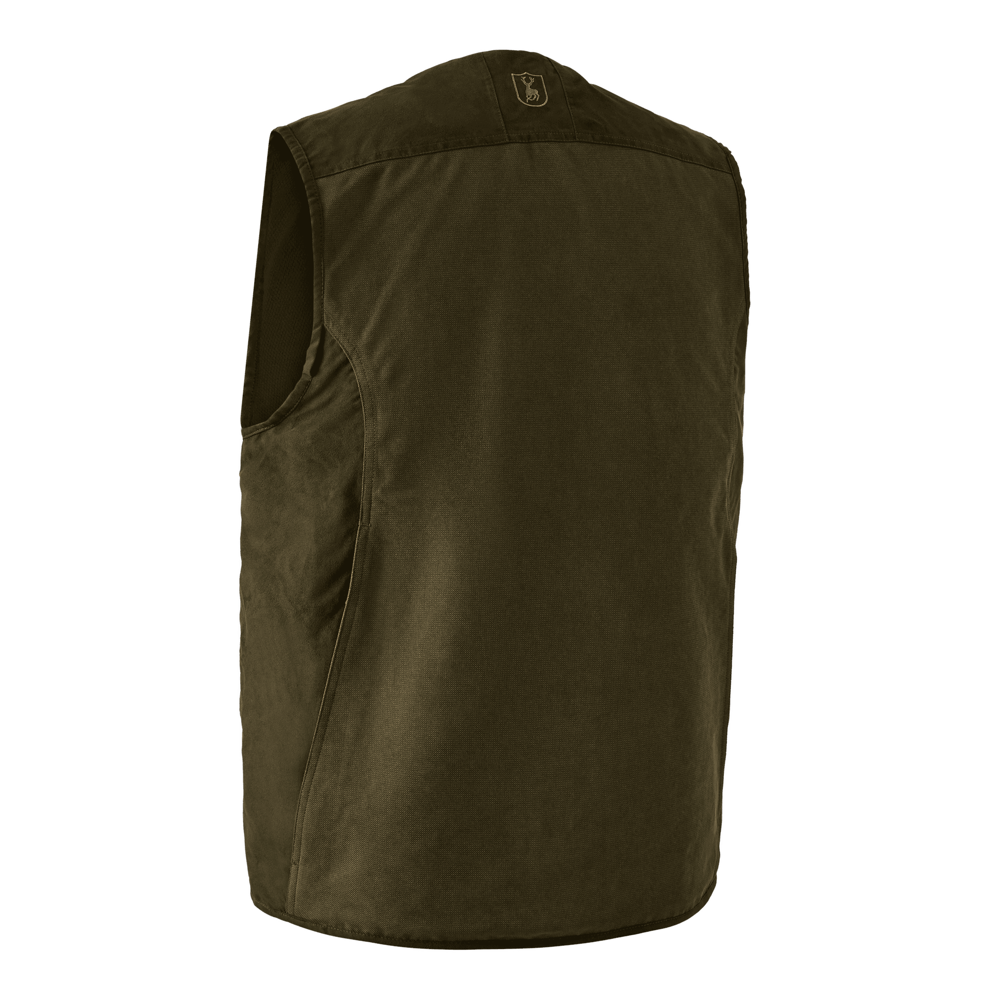 Med et åndbart stofsystem takket være Deerhunter Stormliner® membranen, er denne vest skabt til alle typer aktivt udendørsliv. Den er vandafvisende, hvilket sikrer at du holder dig tør selv under pludselige regnskyer. Dens smarte forlængerstykke foran betyder, at størrelsen kan justeres - ideel til dem, der ønsker ekstra plads til at bære vesten over en jakke.