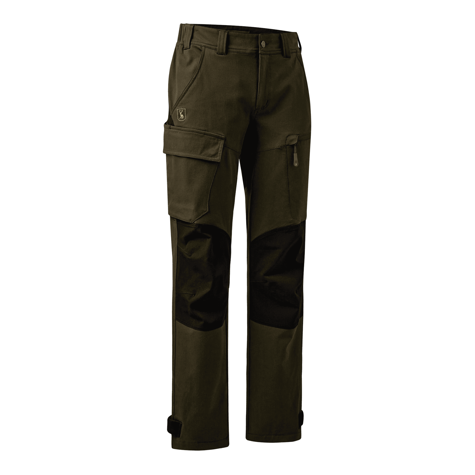Bukserne er også udstyret med en smart skjult knivlomme placeret ved højre lårlomme for dem, der har brug for at have et multiværktøj ved hånden. De formsyede knæ sikrer en naturlig pasform, hvilket betyder, at bukserne følger kroppens konturer og giver maksimal komfort og stil, mens den justerbare ankel med velcrostrop gør det muligt at tilpasse bukserne til dine specifikke behov, hvilket tilføjer en ekstra grad af funktionalitet.