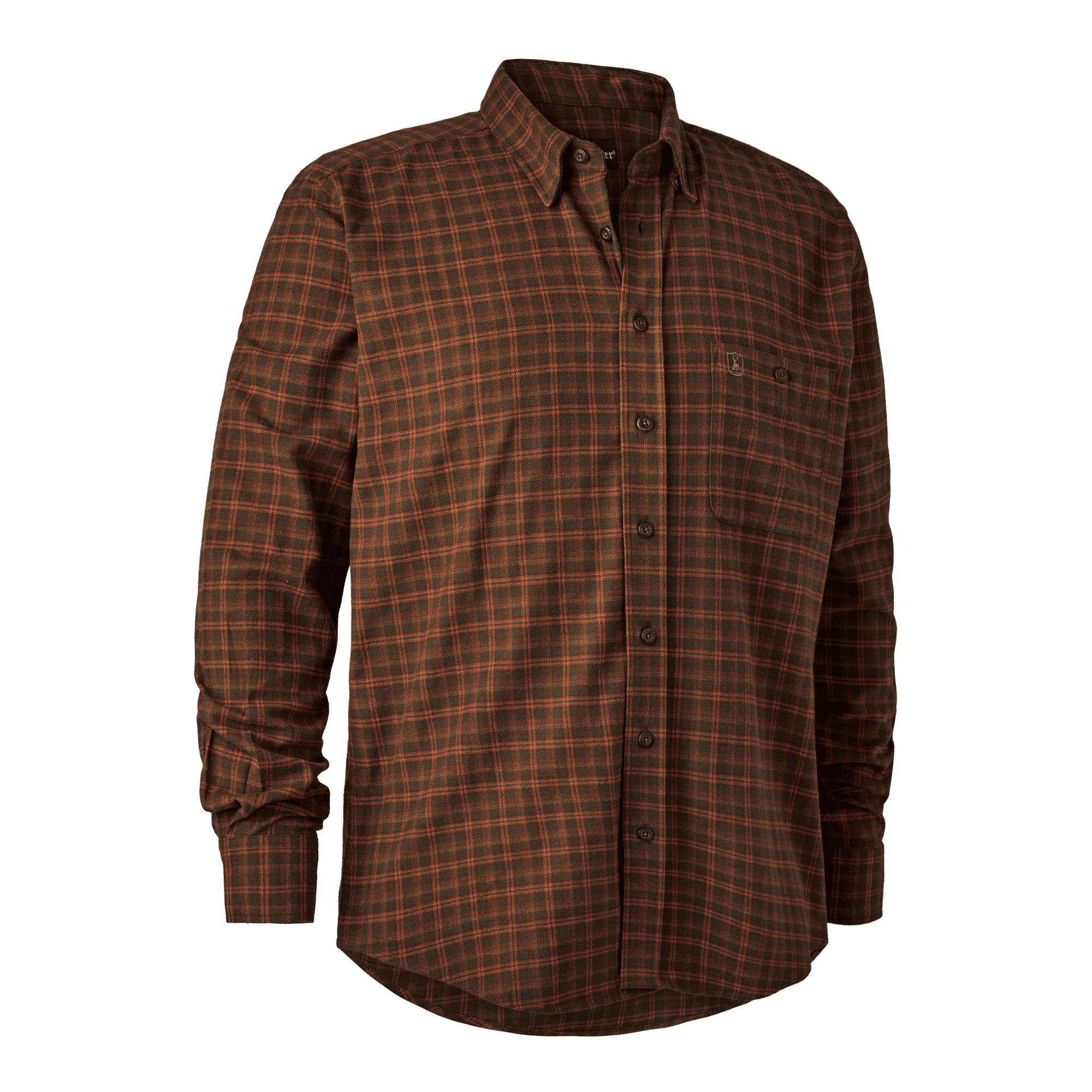 Takket være slidstyrken i det børstede bomuld, vil denne skjorte modstå gentagne vaske med bibeholdelse af farver og form, så den holder sig flot i lang tid. Det er den perfekte skjorte for enhver, der værdsætter kvalitet og klassisk design i deres daglige påklædning. Et stykke tøj, der giver en følelse af komfort og stil, uanset om du er på kontoret, til et weekendarrangement eller på afslappet skovtur.