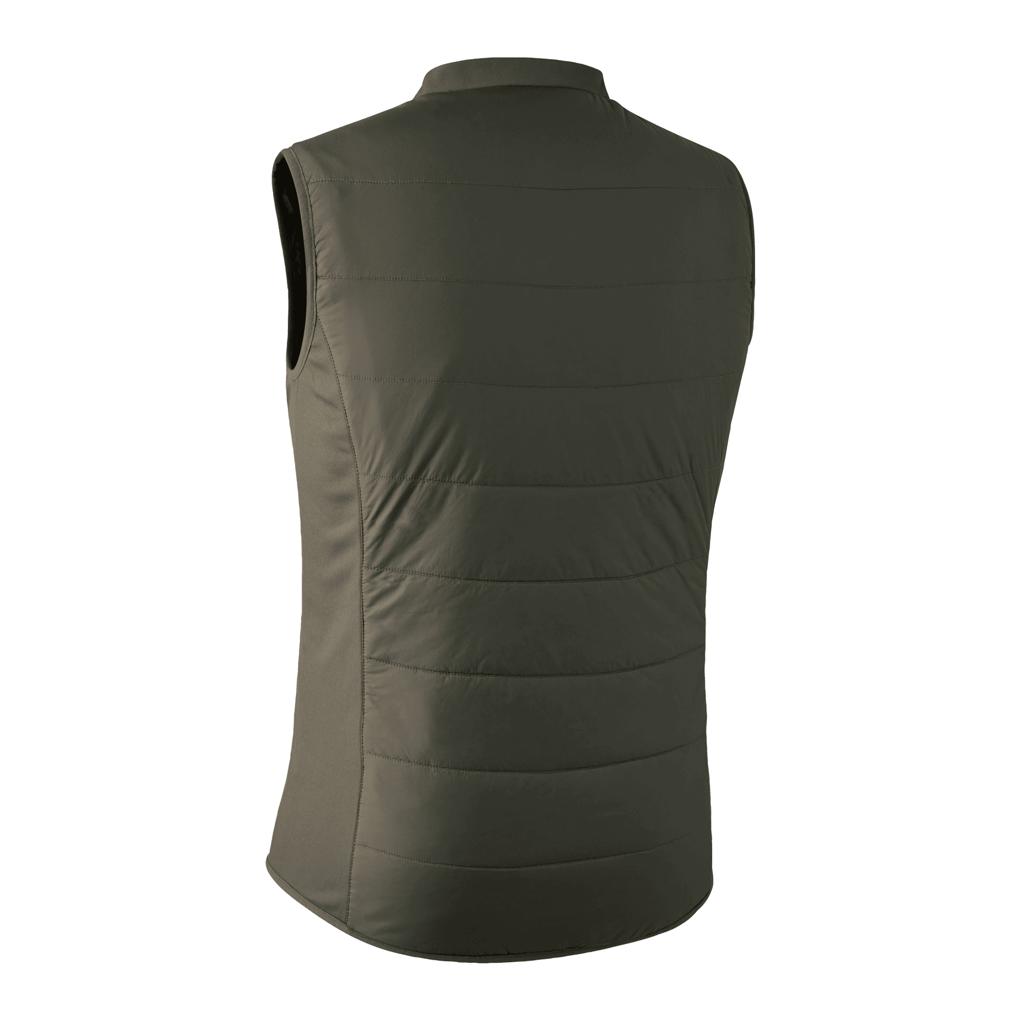 Overfladen på vesten har en vandafvisende behandling, hvilket gør den ideel til udendørsaktiviteter i ustadigt vejr. Du vil også nyde godt af den fleksible kvalitet i begge sider af vesten, som sikrer en høj grad af bevægelsesfrihed og en førsteklasses komfort. Dette gør den perfekt til både aktiv brug og daglig komfort i byen, når temperaturerne begynder at falde.