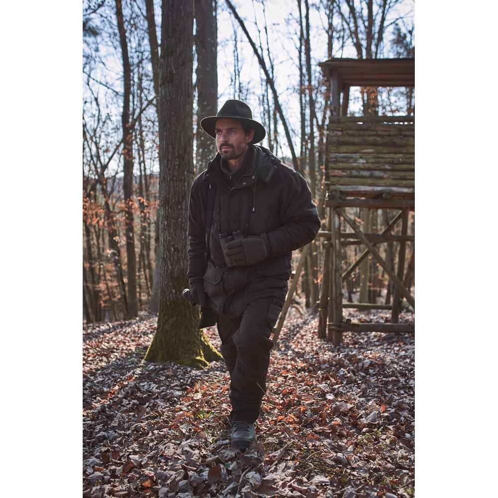 Den tykke polstrede, varme anstandsjakke er den ideelle jagtjakke til vinterens jagter i kolde temperaturer. Det bløde, ekstremt stille øverste materiale har en vandafvisende finish. Med den varme 120 g / m² polstring holdes kroppen behageligt varm, selv i lange siddeperioder.