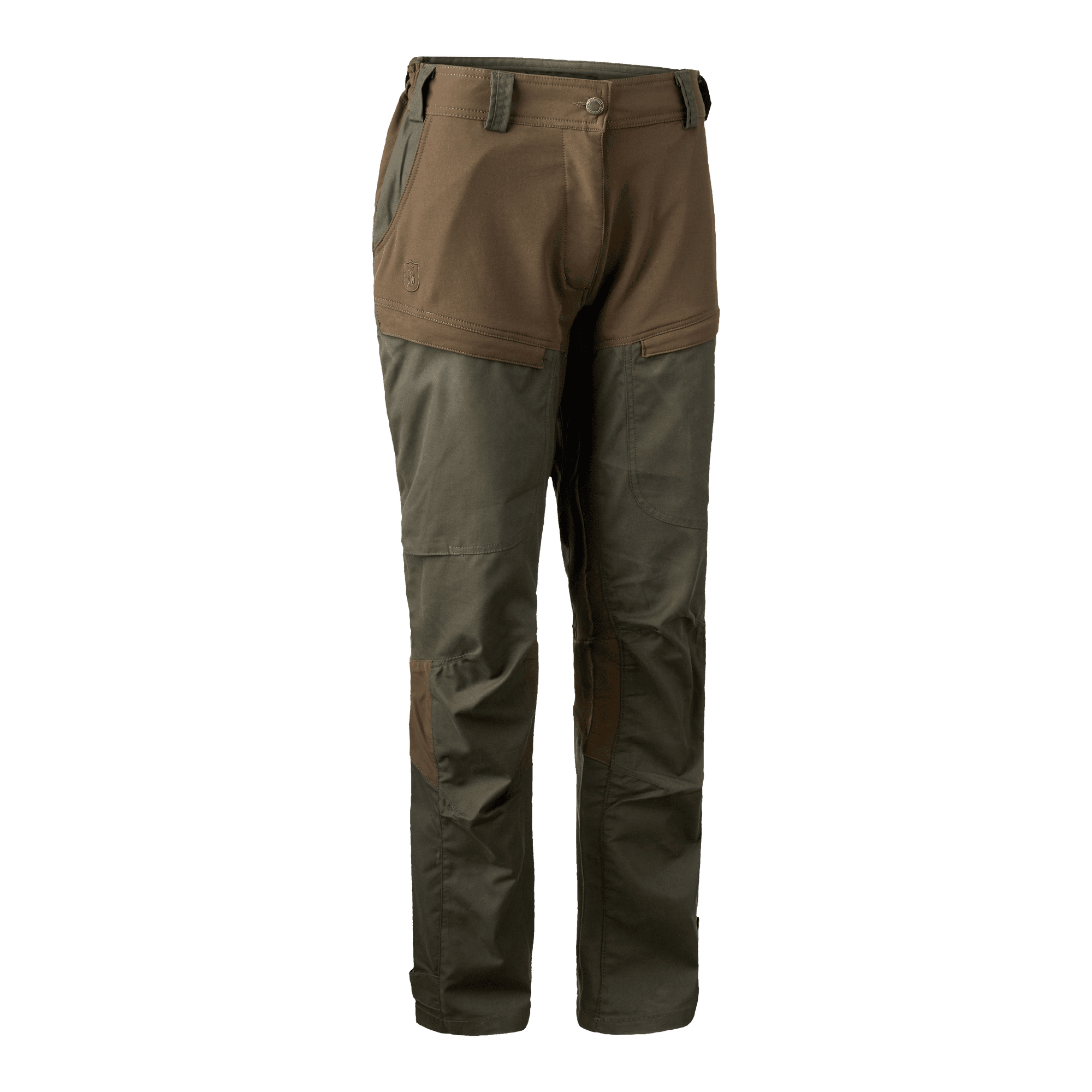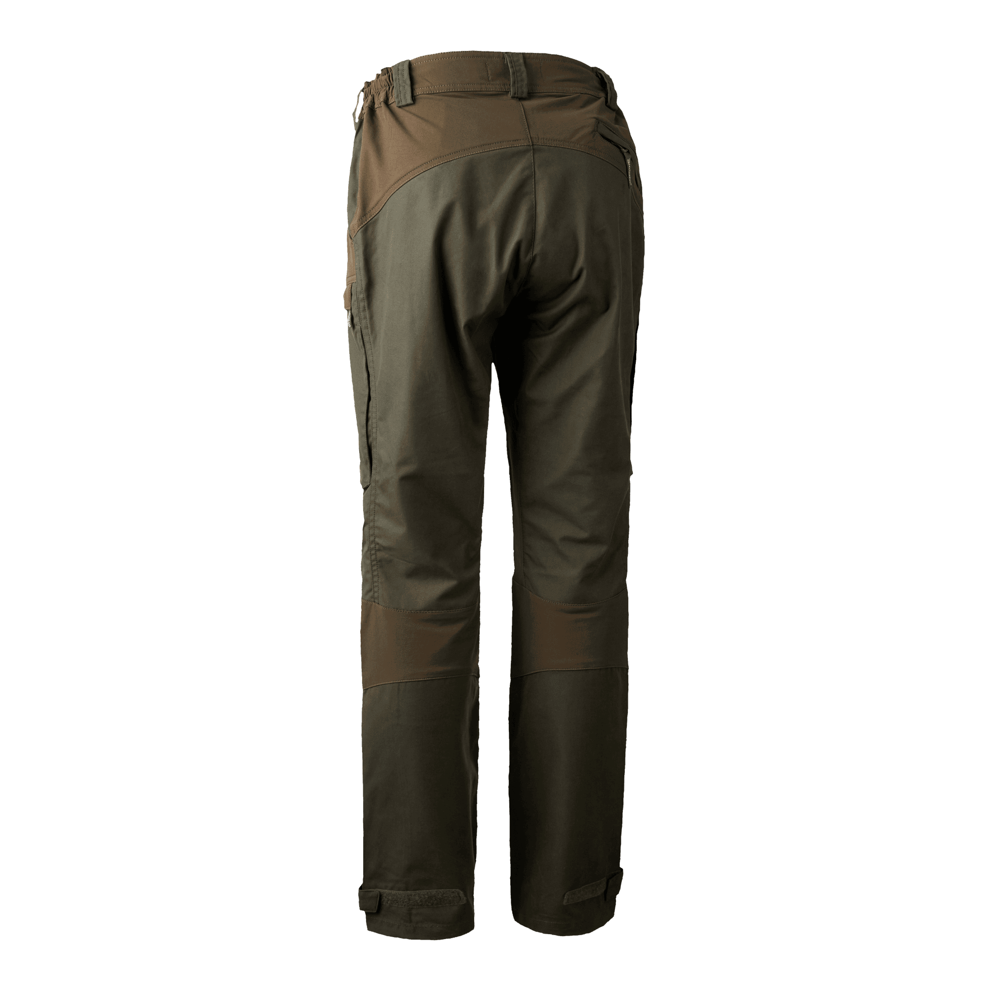 Den finurlige blanding af polyamid, polyester og elastan gør bukserne slidstærke, lette og yderst fleksible. De er designet til at tilpasse sig dine behov, hvad enten du kryber gennem lave buske eller strækker dig på en skovlysning. Takket være det justerbare bælte med elastik kan du nemt finde en pasform, der føles helt rigtig for dig.
