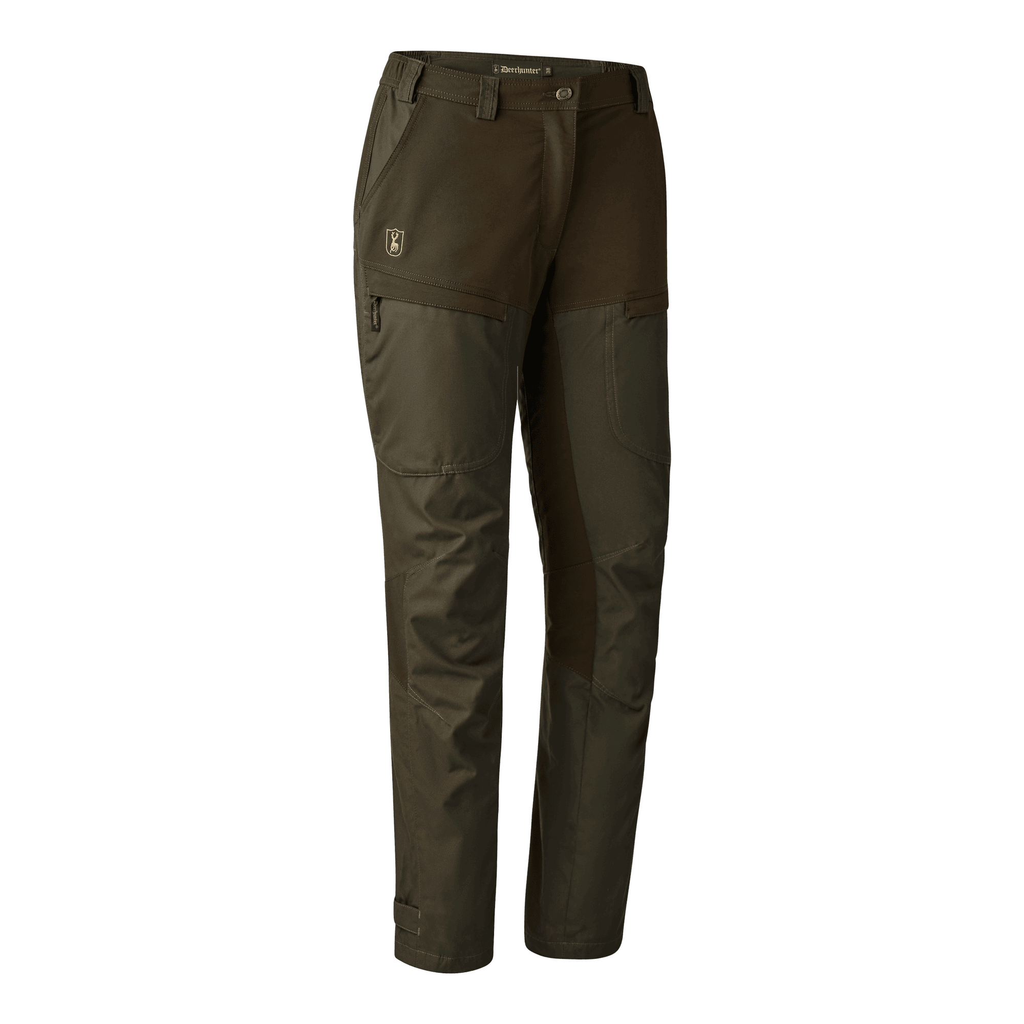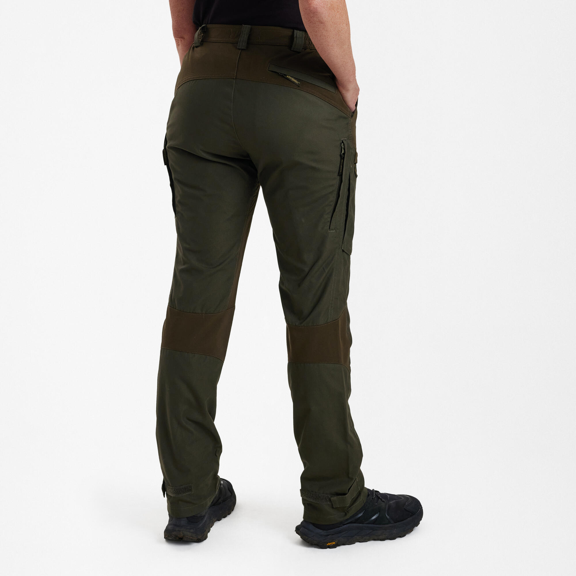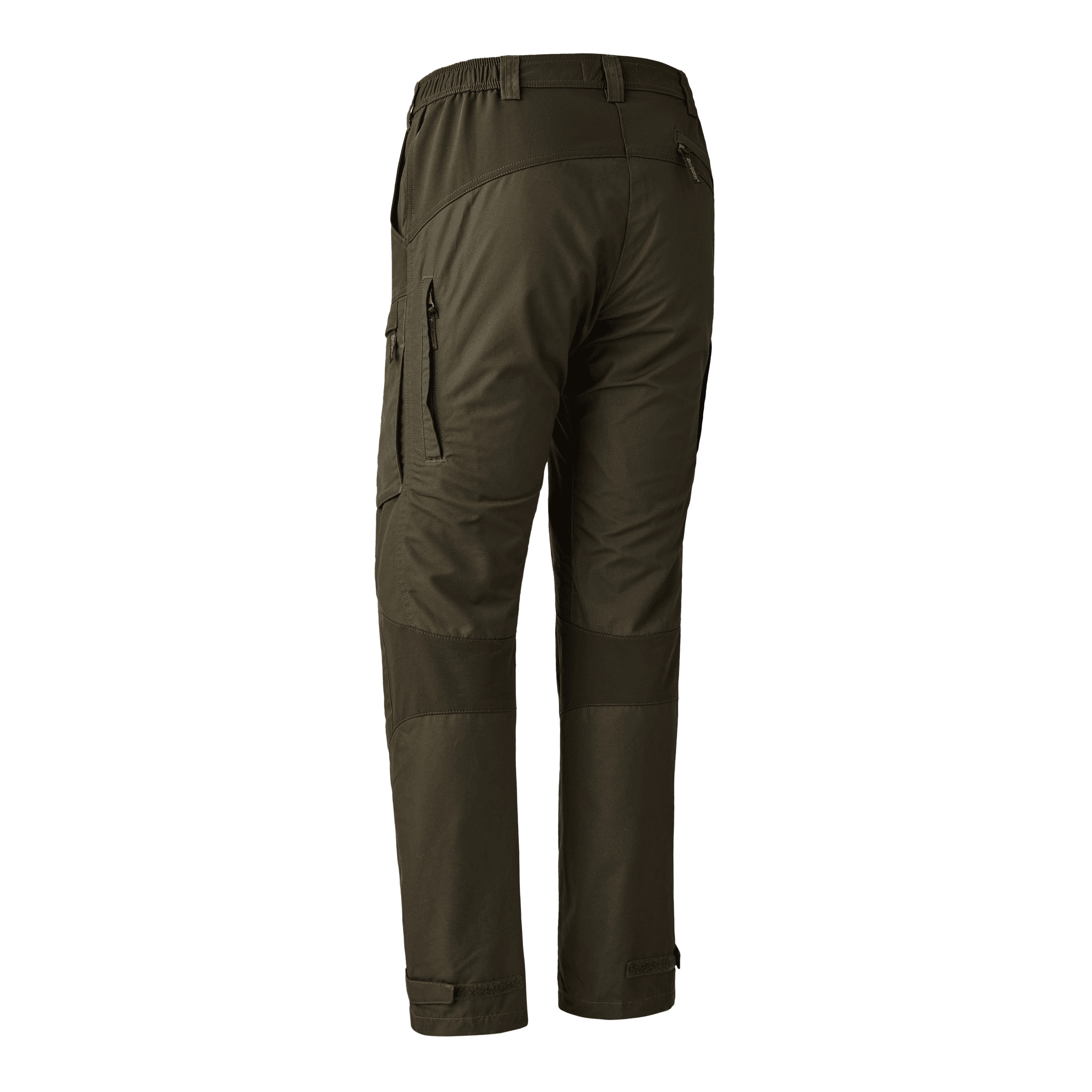 Disse bukser er udviklet med en Deer-Tex®-membran, som sikrer, at de kan modstå selv de mest udfordrende vejrforhold, samtidig med at de bevarer en høj åndbarhed. Dette gør dem ideelle til dem, der nyder udendørsaktiviteter i naturen, uanset vejret. Med et design, der fokuserer på både funktionalitet og komfort, tilbyder de et exceptionelt niveau af bevægelsesfrihed takket være det 4-vejs stræk, der integreres i materialerne. Dette lader bæreren forblive fleksibel og fri til at bevæge sig uden begrænsninger.