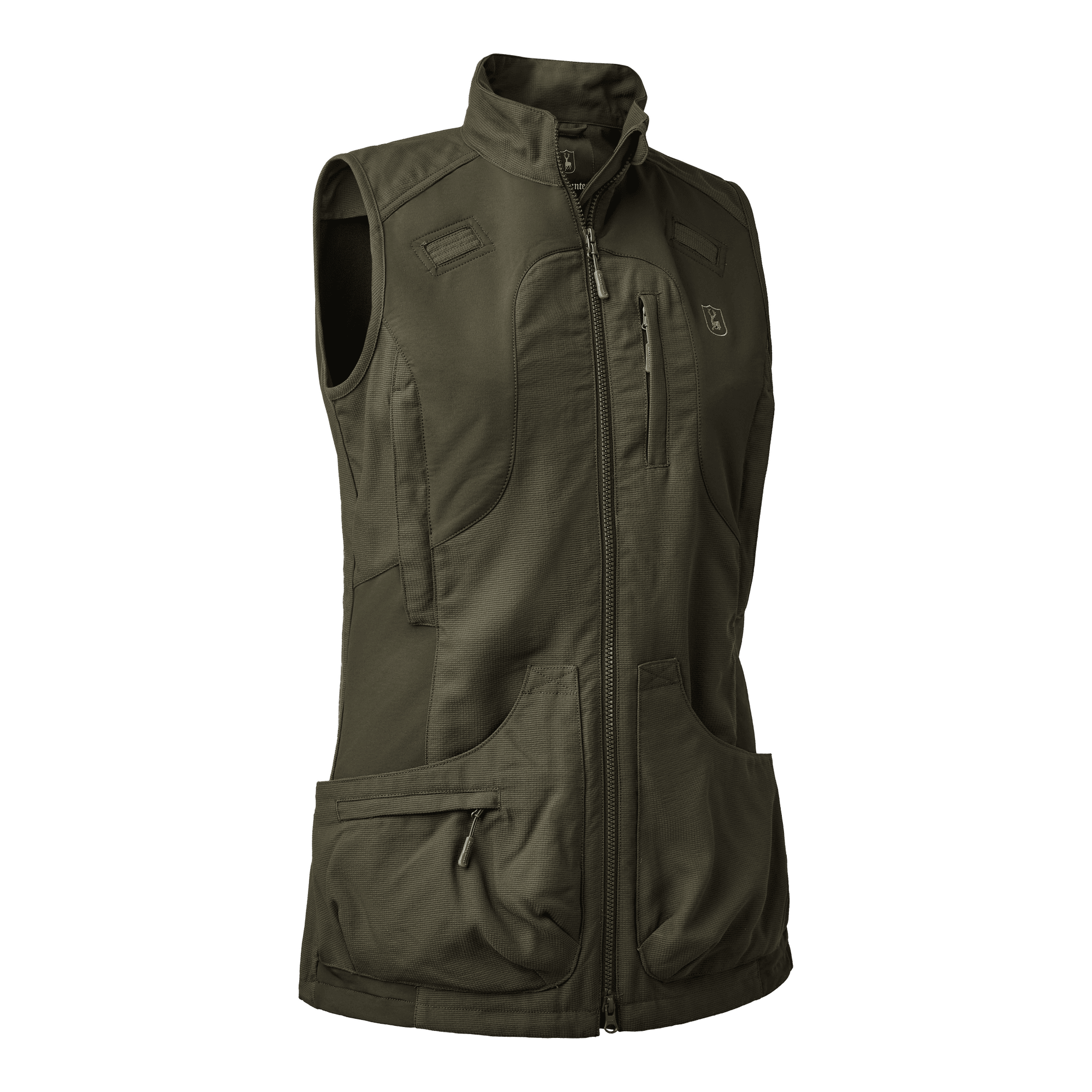 Ydmygt bøjet for den kravstore naturentusiast sætter denne vest standarden for funktionalitet og komfort i enhver udendørsaktivitet. Med en moderne silhuet tilpasset det kvindelige anatomi, tilbyder denne vest ikke blot en flatterende pasform, men også en genkendelig kvalitet, der gør den uundværlig i enhver garderobe. Vesten er udført i et slidstærkt og fleksibelt materiale, som med sikkerhed vil modstå selv de hårdeste vejrforhold og holde dig både tør og komfortabel i regnen. Deerhunters kendte firevejs strækstof giver en fri bevægelighed, der er nødvendig, når terrænet bliver uforudsigeligt, og kræver hurtige bevægelser.