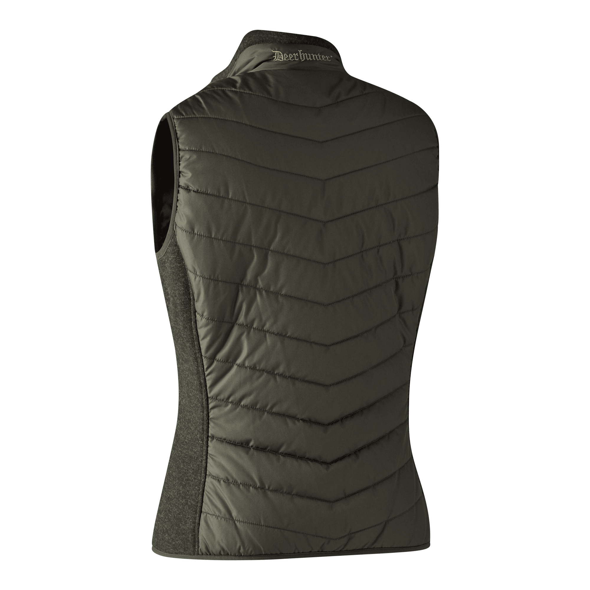 Den praktiske, varme og smukt designede vest er den perfekte ledsager til dine udendørs aktiviteter i efterårs- og vintermånederne. Med en fremragende kombination af funktionalitet og stil, tilbyder denne vatterede model komfort og beskyttelse mod kulden. Vesten har et moderne design med strikkede kontrastpaneler langs siderne og skuldrene, der sikrer en kropsnær pasform. Dette gør den både flatterende og funktionel, da den ikke kun holder på varmen, men også giver en fremragende bevægelsesfrihed.