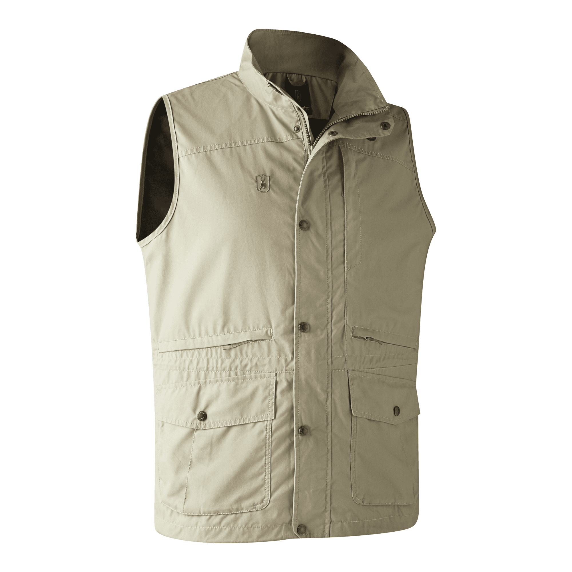 Vestens mange lommemuligheder sikrer, at du altid har plads til de nødvendige redskaber og personlige ejendele. Med en brystlomme og to vandrette lommer, alle med skjulte lynlåse, kan du trygt opbevare dine værdigenstande uden frygt for at miste dem under aktiviteter. Ydermere er der to forlommer med bokslæg, som giver ekstra plads til større genstande. Det praktiske designelement stopper dog ikke her; der er også en vildtbaglomme med lynlås, perfekt til jægeren eller den eventyrlystne, som ønsker at have sit udstyr lige ved hånden.