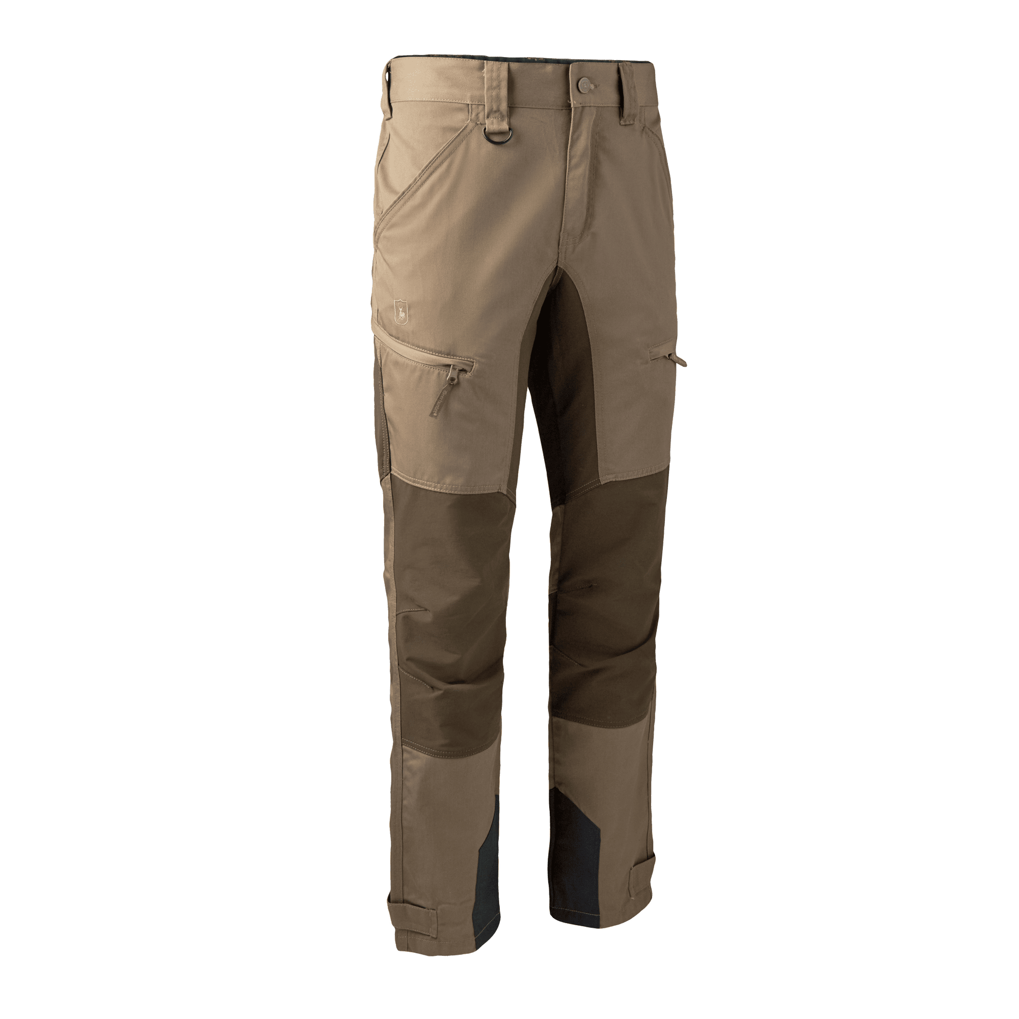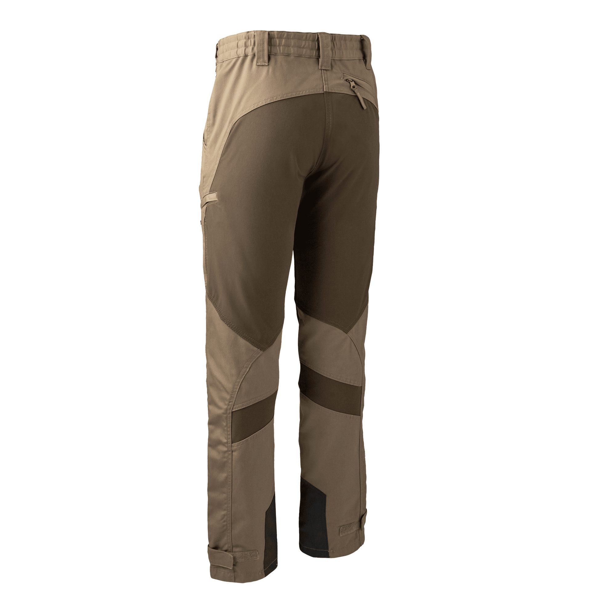 Komfortable og slidstærke bukser med elastisk talje, forstærkninger og strækbare paneler.