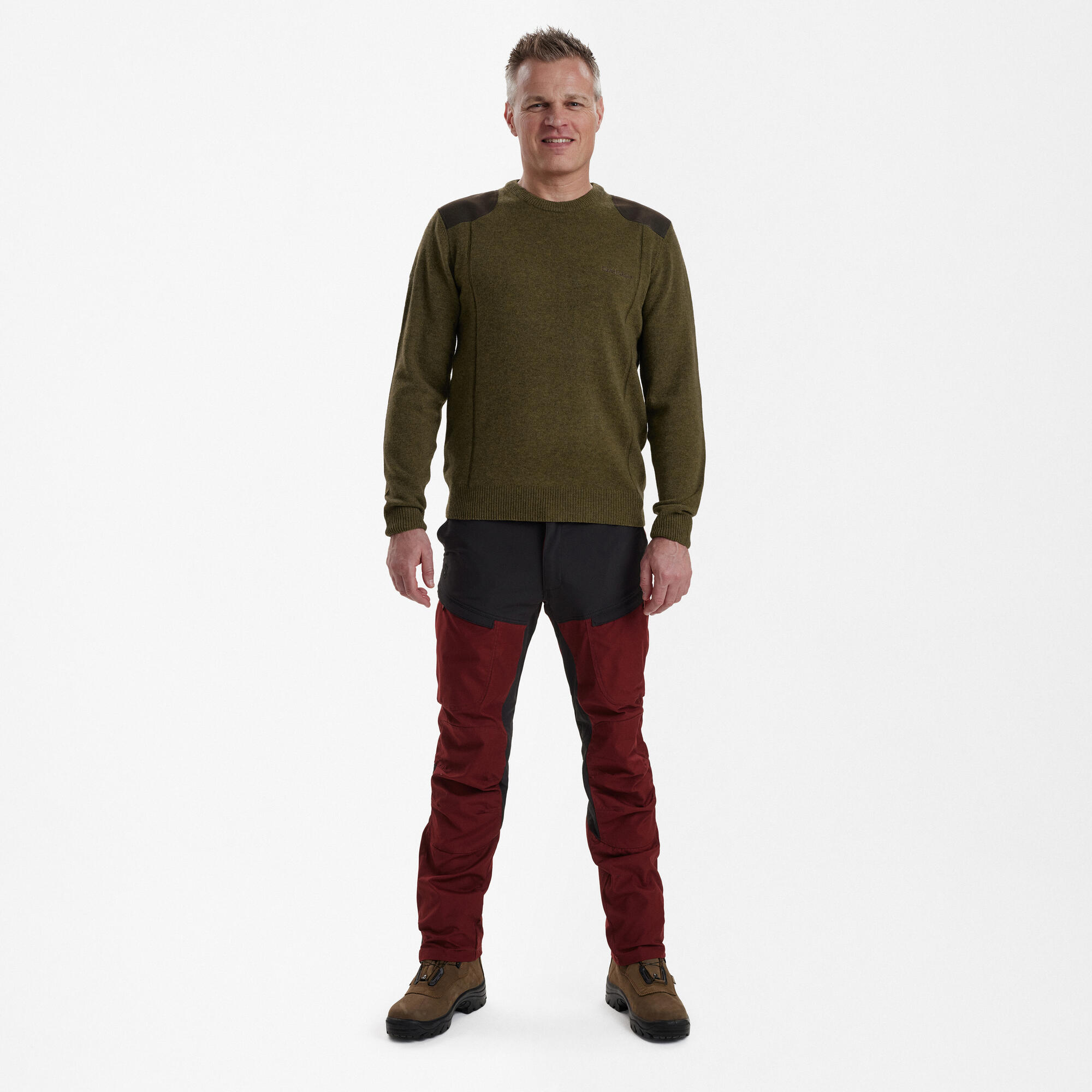 Derudover giver elastanen den nødvendige fleksibilitet til at bevare den ønskede pasform gennem daglig brug. Dette gør trøjen til et alsidigt valg, velegnet til både afslappede og mere formelle anledninger. Ruskindslapper i kontrastfarver, placeret på skuldre og albuer, tilføjer en subtil men sofistikeret detalje, der fremhæver trøjens eksklusive look. Disse lapper forstærker ikke kun trøjens struktur, men giver også ekstra slidstyrke på de mest udsatte områder.