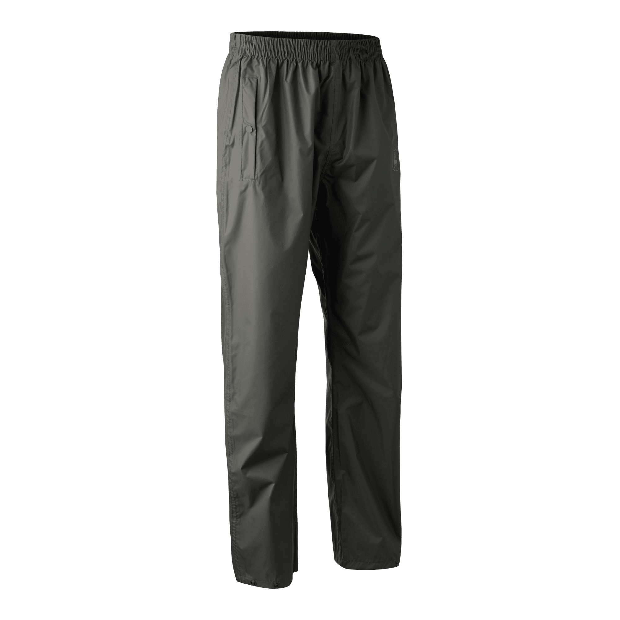 Regnbukserne er designet med en praktisk venstre lommefunktion, som gør dem 'packable'. Dette betyder, at de kan pakkes ind i deres egen lomme, hvilket gør dem til det perfekte tilbehør, når du kun har lidt plads i tasken. Denne funktion tilføjer et ekstra lag af bekvemmelighed, som mange vil finde utrolig nyttig, især under rejse eller udendørsaktiviteter, hvor pladsen er en luksus. Lommen er desuden udstyret med en lynlås, der både beskytter imod fugt og holder bukserne sikre, når de er pakket sammen.