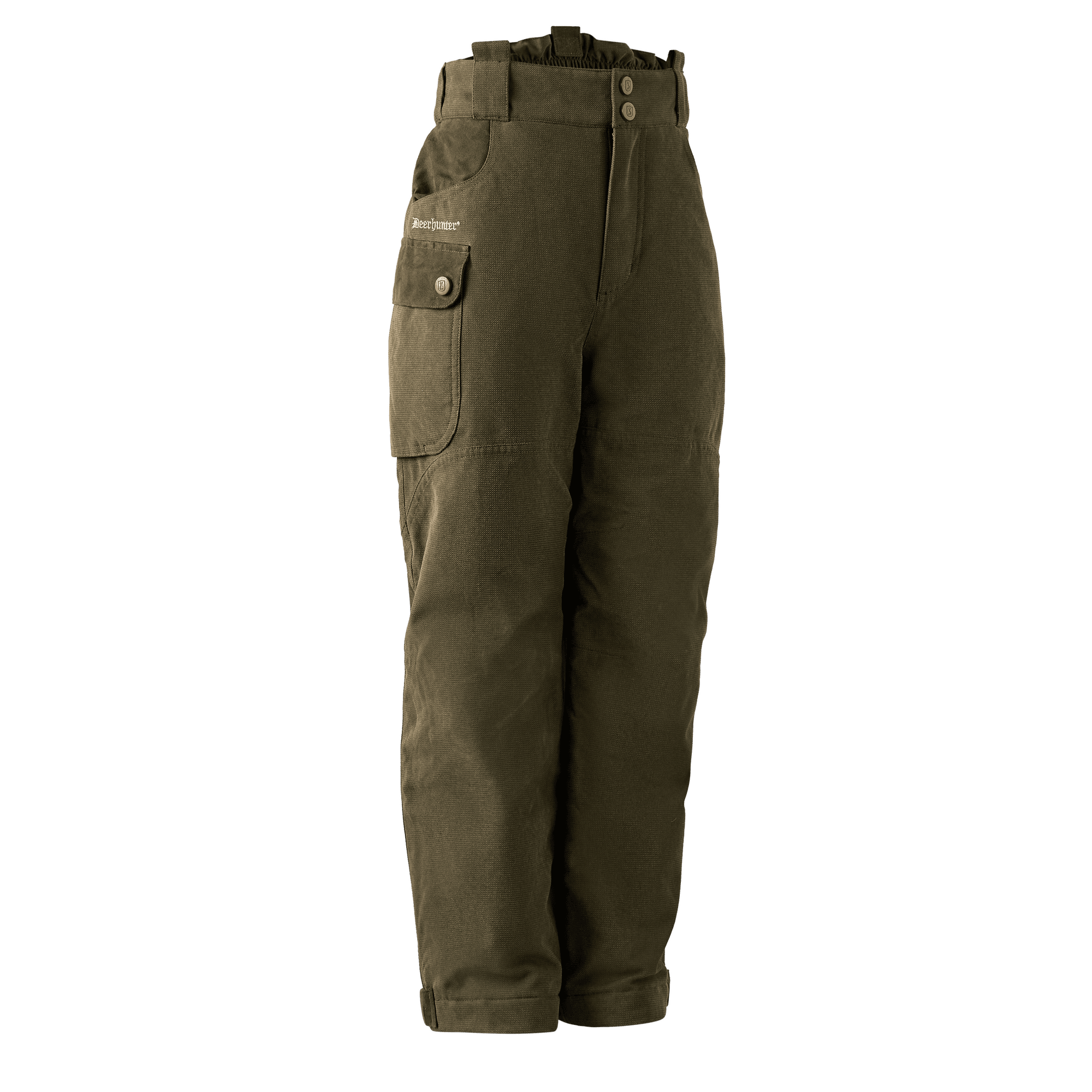 Varme og justerbarhed er centrale elementer i udformningen af disse bukser. Disse bukser er ideelle til børn, der elsker udendørsaktiviteter, uanset vejret, takket være deres vind- og vandtætte design. De er foret med et isolerende lag, der holder vinterkulden ude, og samtidig sikrer komforten en perfekt pasform med aftagelige seler og elastikpanel i taljen. Bukserne er tænkt sammen med Deer-Tex® Perfomance Shell-membranen, som ikke kun beskytter mod elementerne, men også giver åndbarhed, så huden kan ånde, når de små er i gang med deres eventyr. Disse funktionelle bukser er designet med formsyede knæ, hvilket giver større bevægelsesfrihed, perfekt til leg og aktivitet på ujævnt terræn. De justerbare stropper ved anklerne med knapper sørger for at holde bukserne på plads og giver mulighed for tilpasning alt efter behov. Der er tænkt på alt, hvad en lille jæger kunne få brug for.