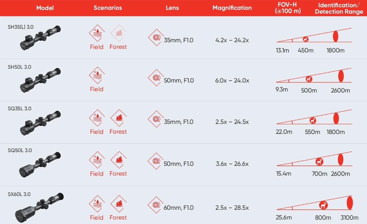 | SQ50L 3.0 – Kraftfuld allround-termisk til den seriøse jæger SQ50L 3.0 er udstyret med en stærk 50mm linse og en 640 sensor, der giver dig et synsfelt på 15,4 meter ved 100 meter. Den følsomme 15mK termiske detektion og den indbyggede 1000m afstandsmåler gør enheden ekstremt præcis – selv under svære forhold. |