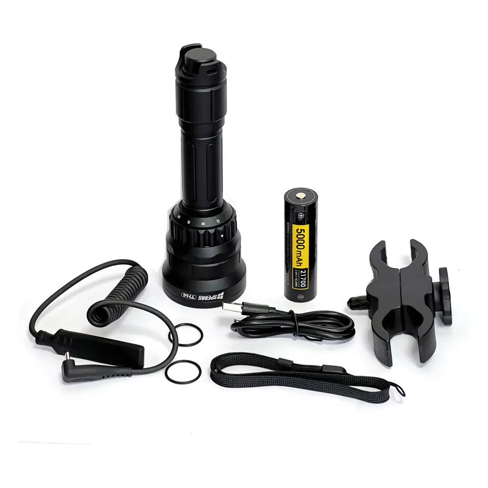 SPERAS TH4 er designet med jægerens behov i tankerne og tilbyder en kombination af funktionalitet, holdbarhed og brugervenlighed, hvilket gør den til et fremragende valg for dem, der søger en pålidelig lommelygte til jagt.