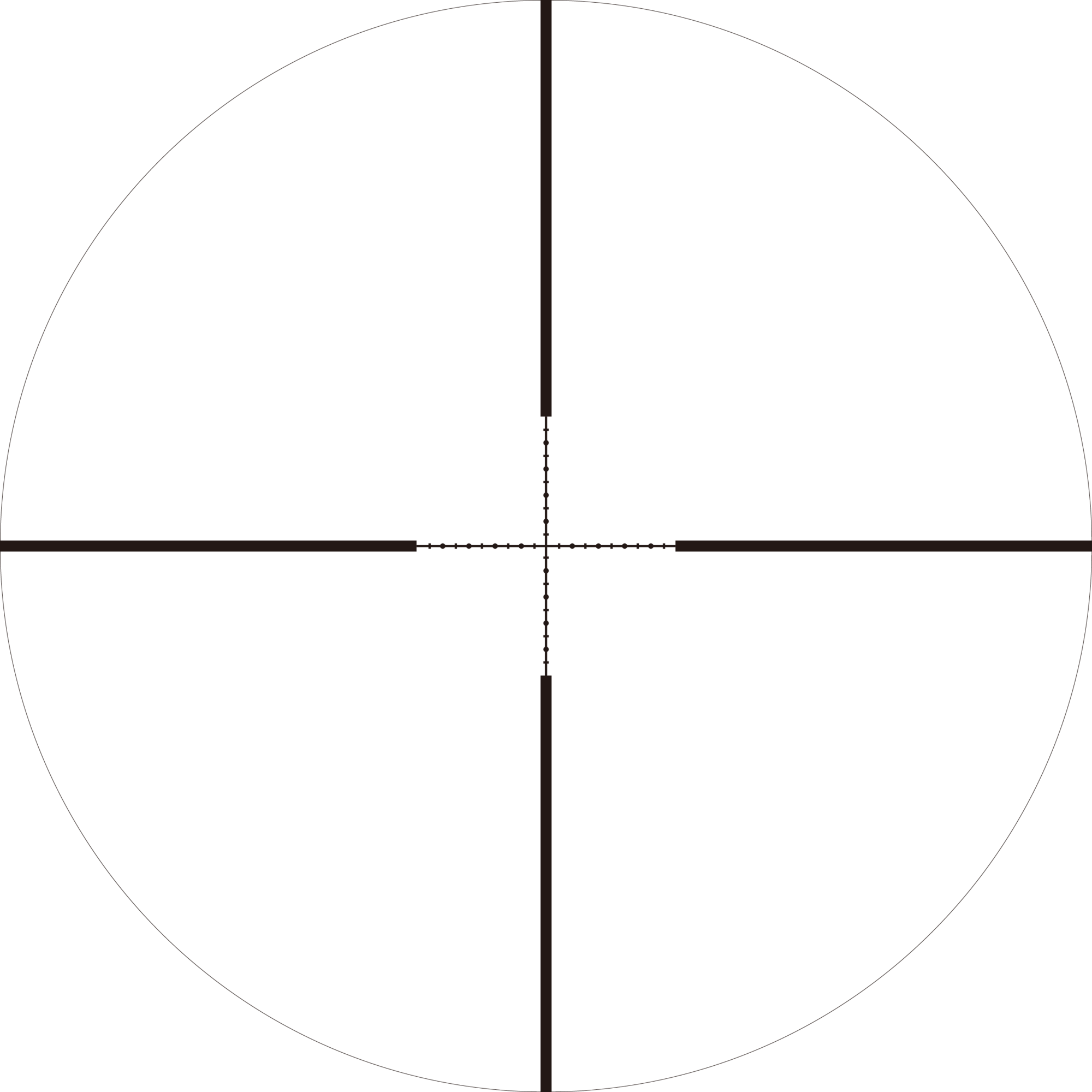Andet focal plane reticle. Reticle subtensions korrekte ved 12X. Subtension detaljer for HX 4-12X40 med EMD12 reticle vist ovenfor.