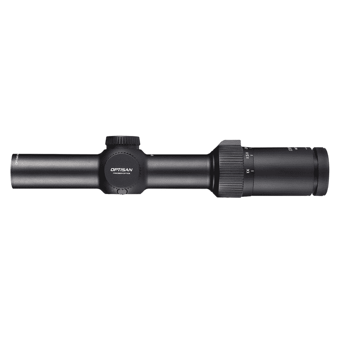 Med et bredt synsfelt på 36,6 meter ved 1X, giver Optisans optiske system og præcise samling en flad synsfelt, hvilket gør det muligt for jægere at skyde med begge øjne åbne.