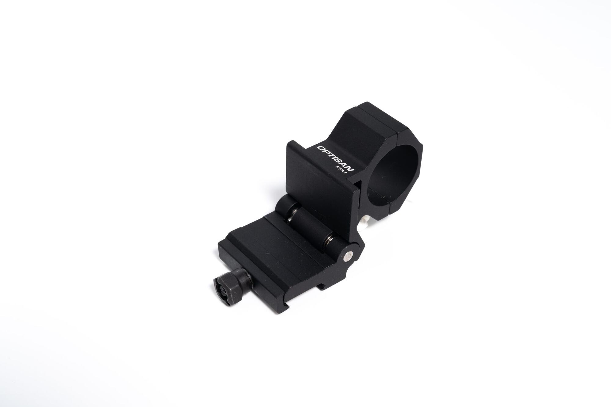 Når RMG3X er installeret på PFM30 flip til side-mount, skal du blot trække den for at skifte til et ikke-forstørret syn.