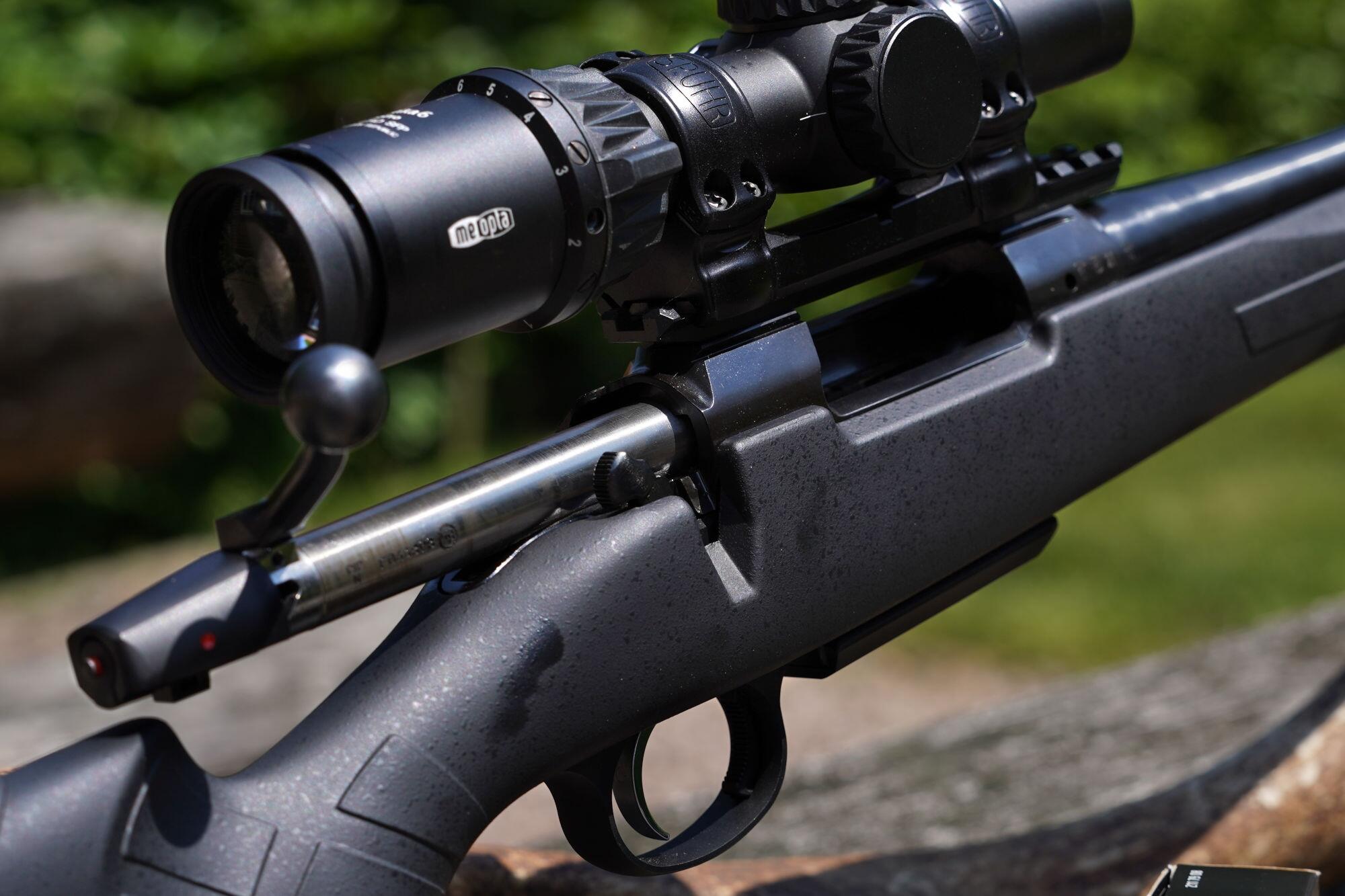 | Egenskaber | Bolt-action riffel med syntet kolbe, M14x1 pibe gevind, extra-lang Weaver rail, 2-position sikring, justerbar kind pude |