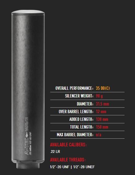 A-Tec Wave 22LR Carbon er en ultralet og effektiv lyddæmper designet til randtændingsrifler og luftvåben i kaliber .22 LR. Fremstillet af kulfiber vejer lyddæmperen kun 84 gram, hvilket gør den til et oplagt valg for jægere, der søger en let og diskret løsning. Med en støjreduktion på op til 36 dB(C) leverer Wave 22LR Carbon en betydeligt mere støjsvag skydning.