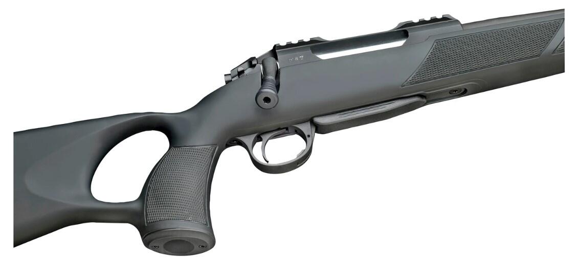 Riflen har en magasinkapacitet på 3 (+1) skud. Det praktiske tommelfingerhuls stykke lavet af robust polymer og forudinstallerede slyngedrejer gør Thumbhole perfekt til brug af drivjagtsskytter.
