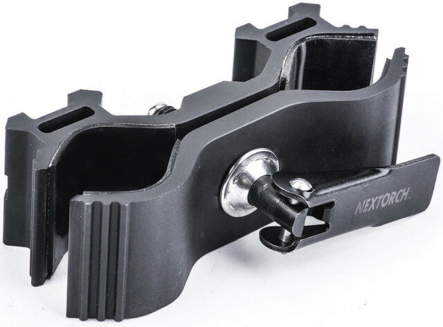 For runded lommelygter med en diameter på 23 til 28 mm (0,9 til 1,1 "). For cylinderdiameter fra 15 til 28 mm fra 0,59 "til 1,1". Kan installeres uden værktøj. "ottetal" med standard skinnekonstruktion. Fastgør lommelygte let på løb eller kikkert, picatinny eller weaver skinner. Passer til Nextorch modeller P60, TA30, TA40, TA5, PA5, P5. Gummi beskyttelse inkluderet. Aluminium konstruktion. Farve: sort.