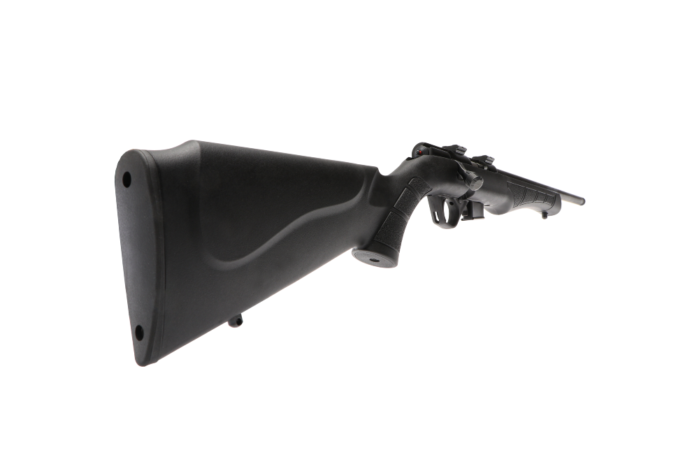 Riflerne har ergonomiske sorte polymerskæfter, med kindpude forhøjer til begge sider, hvilket gør den brugbar til links skytterne.