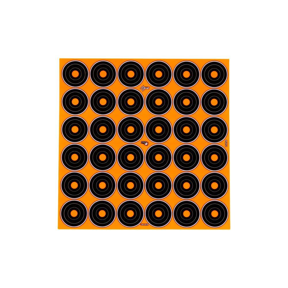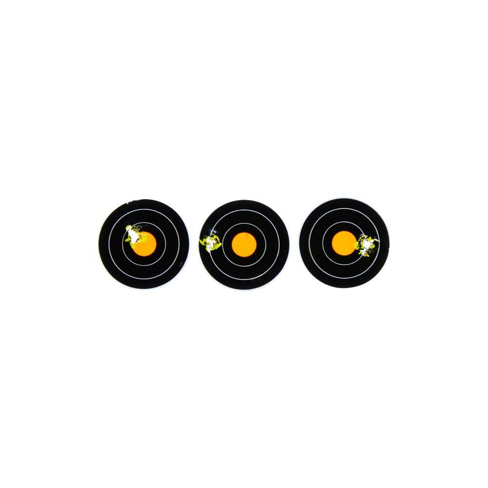 EZ Aim® Adhesive Splash Reactive Paper Skydemål giver dig 2,54cm selvklæbende mål, du kan tage af og klæbe dem på eksisterende mål for at dække skudhuller og på den måde forlænge dit måls levetid.