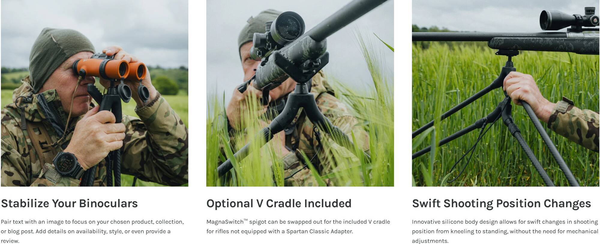 Hurtig af-montering med MagnaSwitch™ I modsætning til almindelige skyde-stokke giver SpringBok Quadsolid stabilitet — det øger effektiv rækkevidde og præcision. Monteres på få sekunder på geværer med Spartan Classic Adapter, og er ideel til vildsvinejagten, hvor hurtige, sikre skud tæller. |