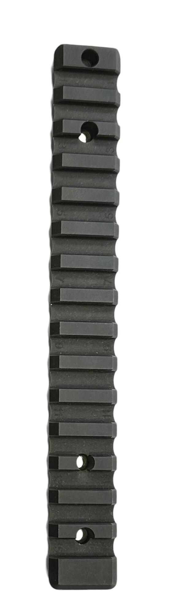 Picatinny skinne/montage, sort, fremstillet i stål i Danmark